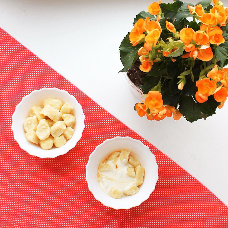 Многие мамочки задаются вопросом-как сварить мизерную порцию каши для своего ребёночка. И поскольку в доме у меня больше каши никто не ест (не, иногда на них находит, но очень редко), я решила этот вопрос так-варю каши для нас двоих, и ем вместе с Анютой. У меня есть замечательная маленькая кастрюлька, подаренная подругой 😉. На поллитра молока я кладу 3 ст. ложки манной крупы, причём, чтобы комков не было, сыпать надо в ещё не закипевшее молоко, ну и конечно, помешивать после этого. После закипания жду момента, когда каша начинает густеть, и тут же выключаю. Теперь чуть солю, раскладываю по тарелкам и кладу в каждую кусочек сливочного масла. Перемешиваю и... Внимание! Присыпаю сверху сахаром. Перемешивать сразу не надо. Сахар не даёт при остывании образоваться сверху противной пенке. Когда каша подостыла, тогда уже можно перемешать и есть 😊 Приятного вам аппетита!