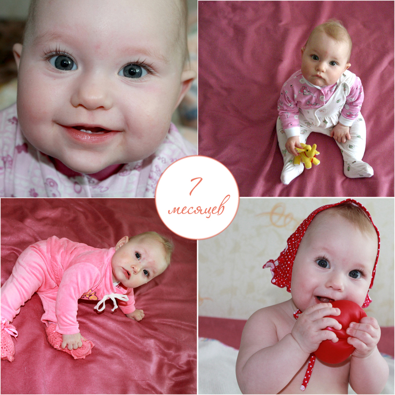 Только сокрушалась в день семимесячья, что Анютка ничего не говорит, и не встает. Но за эту неделю и болтать немного начала (бва-бва), и вставать на колени, уголком на низкой опоре, раскачиваться на четвереньках.
