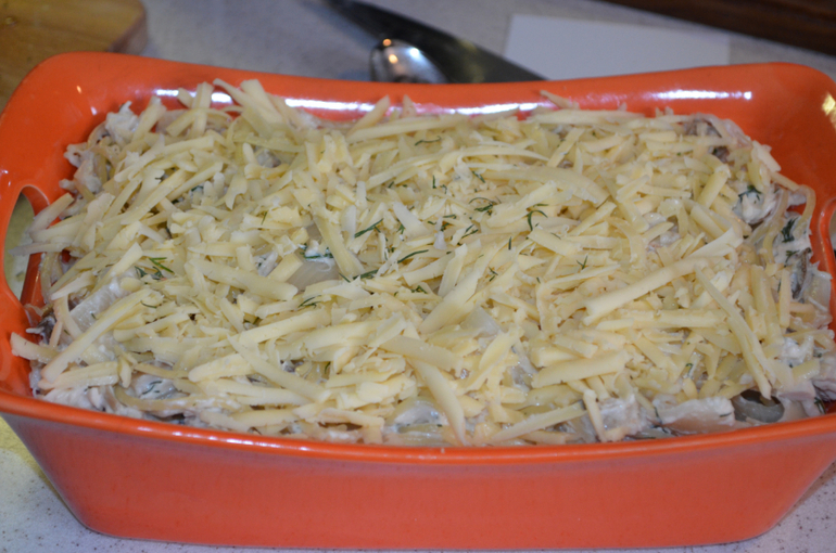 Вот и приходится экспериментировать. Сегодня я слепила запеканку из того, что было. Такой жюльен своеобразный.