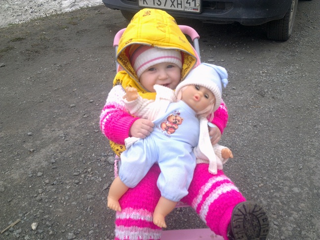 Вышли гулять с кукольной коляской. Лиса покатала-покатала куклу, потом коляску обошла, куклу вынула и сама на ее место села) Пришлось катать согнувшись в три погибели).
