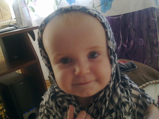 Ездили не давно к прабабушке, та ее угостила яблоком и дала платочек вытерется. Алиса с умным видом понюхала его, потом вытерла рот и ручки, накинула на голову, слезла с коленей и пошла им пыль вытирать) Прям почти весь арсенал выдала=)