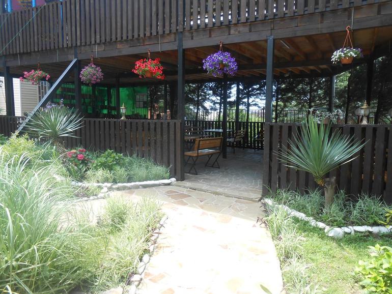 Поселковый благоустроенный мелко-галечный пляж находится в 300 м, работает прокат водных развлечений (скутера, катамараны, надувной банан) и пляжного инвентаря (шезлонги, зонты).