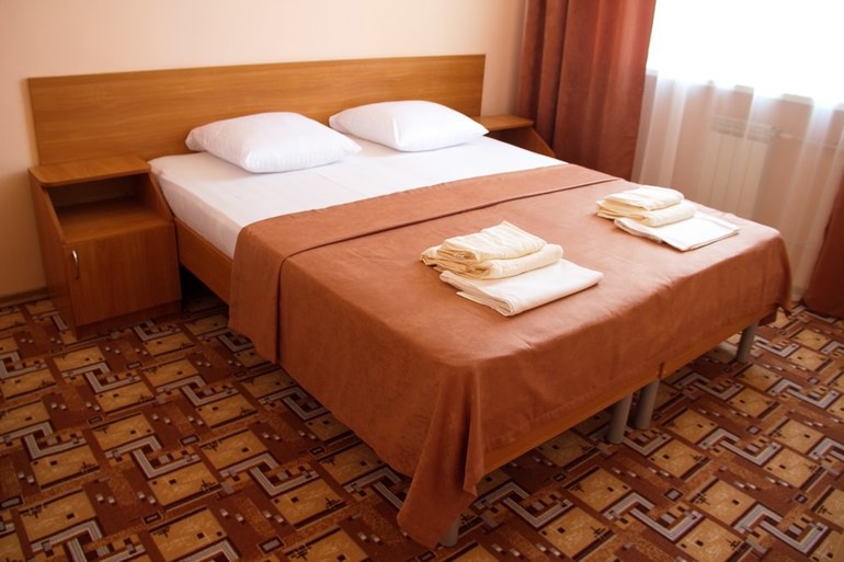 Стандарт 2-местный - стандартный двухместный номер в новом трехэтажном корпусе. В номере 2 односпальные кровати, телевизор, холодильник, кондиционер, душ, туалет, wi-fi. Площадь номера: 9-11 кв.м. Доп.место не устанавливается