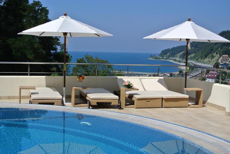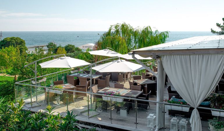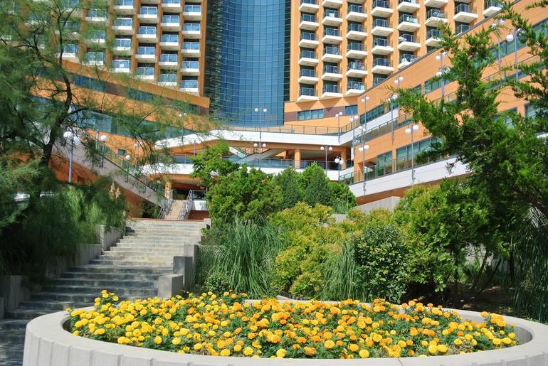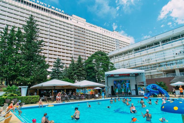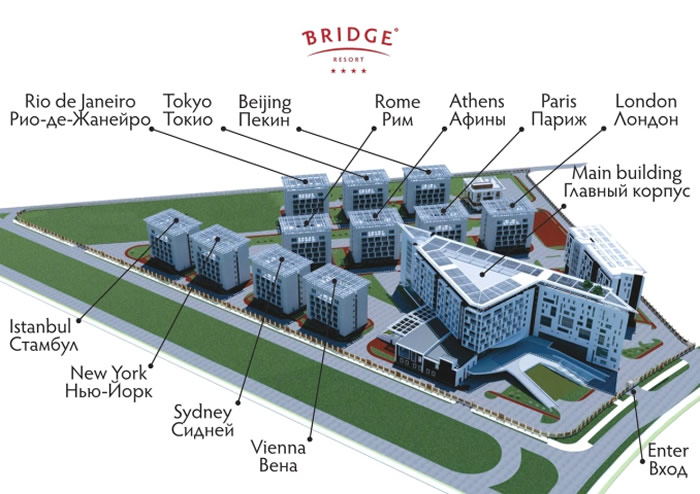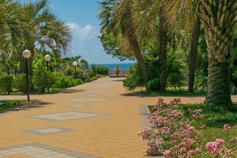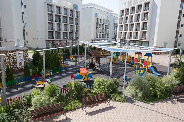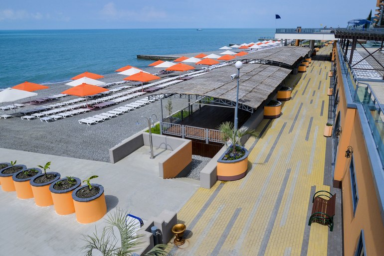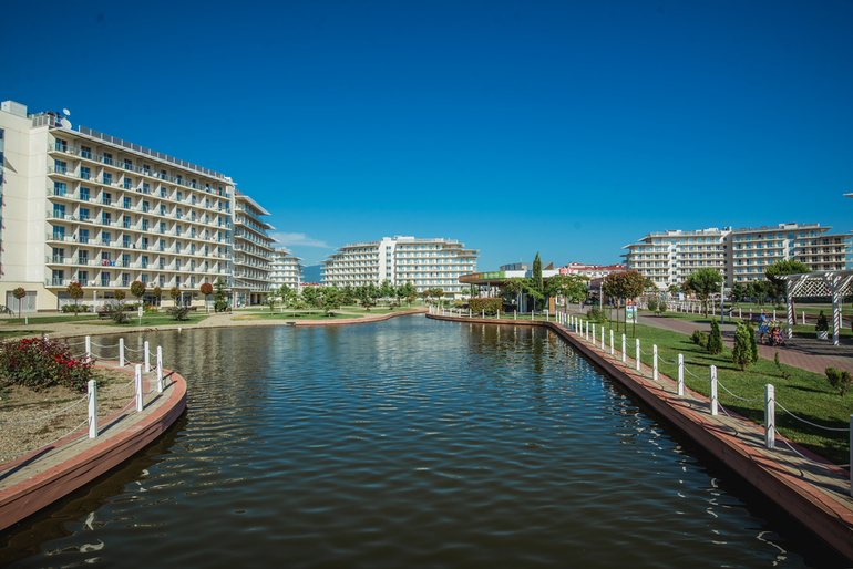 Отель» состоит из двенадцати восьмиэтажных жилых корпусов, на территории оздоровительного комплекса большое количество прогулочных аллей, искусственных водоемов, 5 просторных бассейнов под открытым небом, детских площадок, спортивных сооружений, магазинов, кафе и ресторанов. Широкий галечный пляж находится в шаговой доступности от отеля - 5-10 минут. На всей территории отеля бесплатный беспроводной доступ в интернет Wi-Fi
