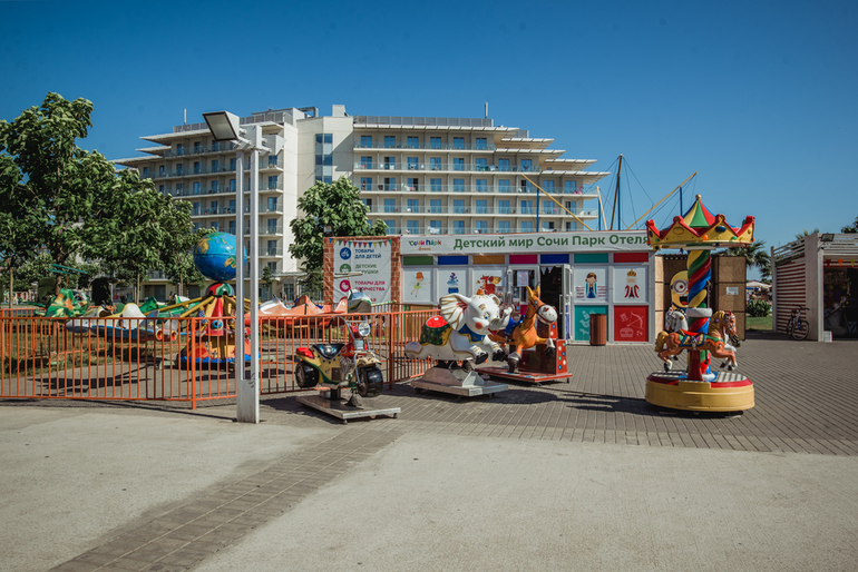 Это семейный курорт, который включает в себя четырёхзвёздочный отель, медицинский и spa-центры, комплекс бассейнов, собственный пляж, рестораны, бары, конференц-залы, детские клубы и workout-площадки. Расположение отеля подкупает своим удобством: курорт расположен в Имеретинской низменности, в двух минутах ходьбы от Чёрного моря, в 10 минутах езды до Международного аэропорта Сочи, в пешей доступности от Олимпийского парка.