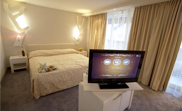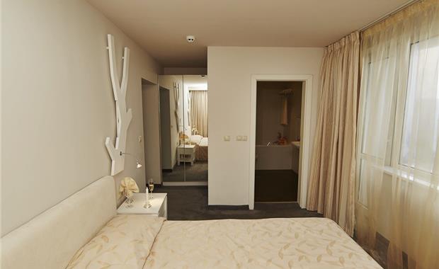 - Junior Suites (40 кв.м., макс. 3 взр. + 1 реб.) - однокомнатный номер с двуспальной кроватью и раскладным диваном