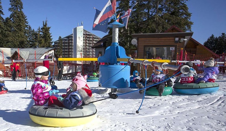 Есть детская зона со специальным детским подъемником, где опытные инструкторы учат детей кататься на лыжах .