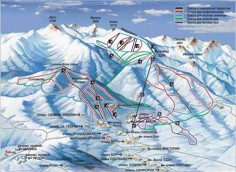 Зимний курорт достаточно интересный, как для новичков, так и для профессиональных лыжников. Он находится в горах Рила в окружении красивейших сосновых лесов .