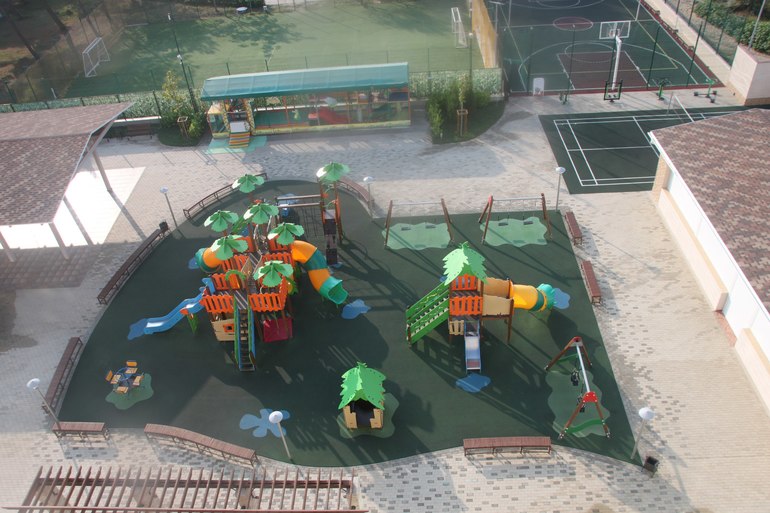 Для юных жильцов отеля оборудован великолепный игровой городок под открытым небом, есть детская комната с воспитателем игровые автоматы.