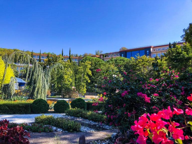 Санаторий расположен в поселке Лазаревское - живописном уголке черноморского побережья, надежно защищенном от холодных ветров горами. Для этого региона характерны теплое лето и мягкая зима, купальный сезон с начала мая до конца октября, лечебный воздух, сочетающий морскую свежесть и ароматы лекарственных растений.