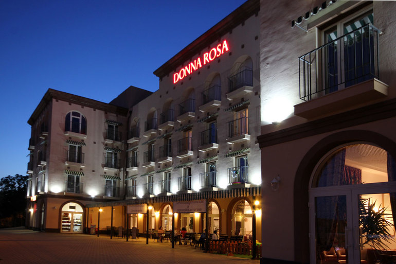 Отель «Донна Роза» (Евпатория) находится вблизи исторического района города Евпатория. Район, где расположен отель, называется Пересыпью и начинается при въезде в город по шоссе из Симферополя. В непосредственной близости от гостиницы - знаменитый маршрут «Малый Иерусалим», магазины, рестораны и кафе, остановка городского автобуса