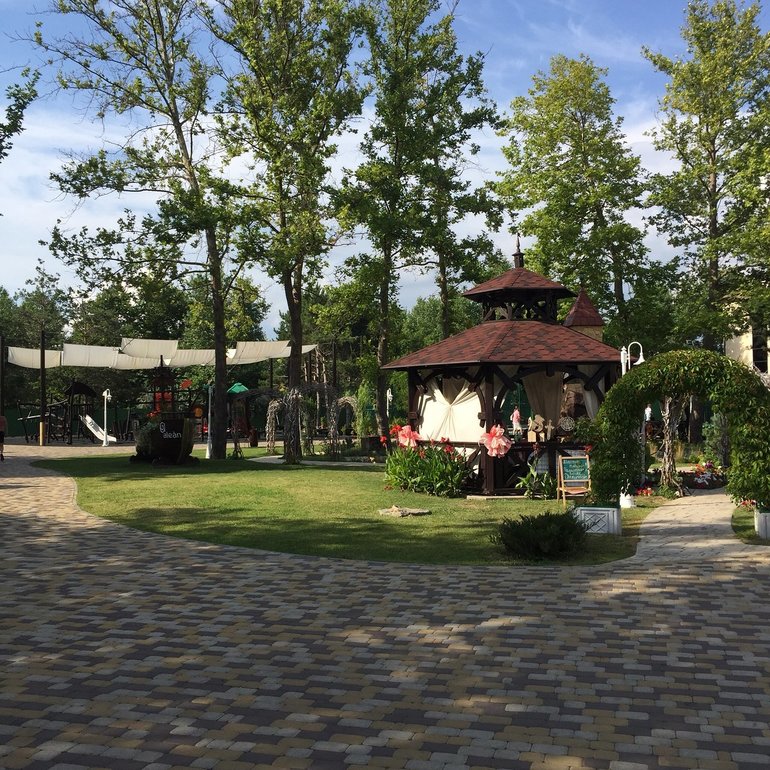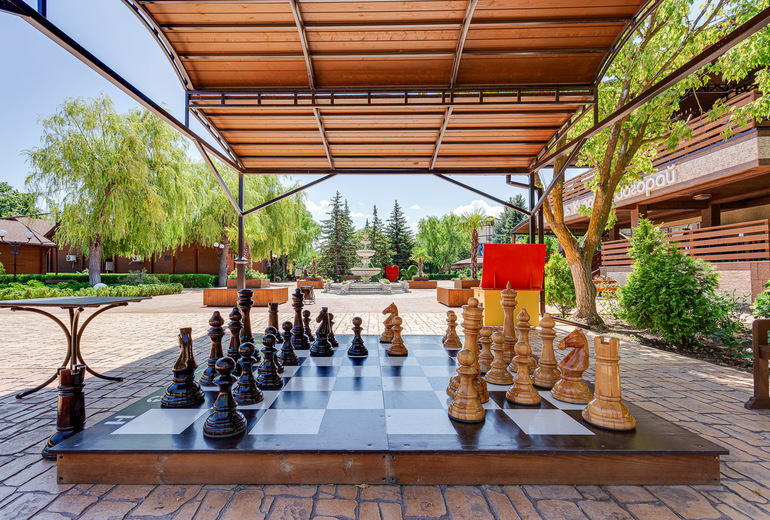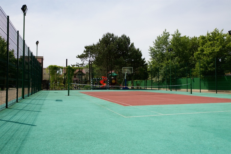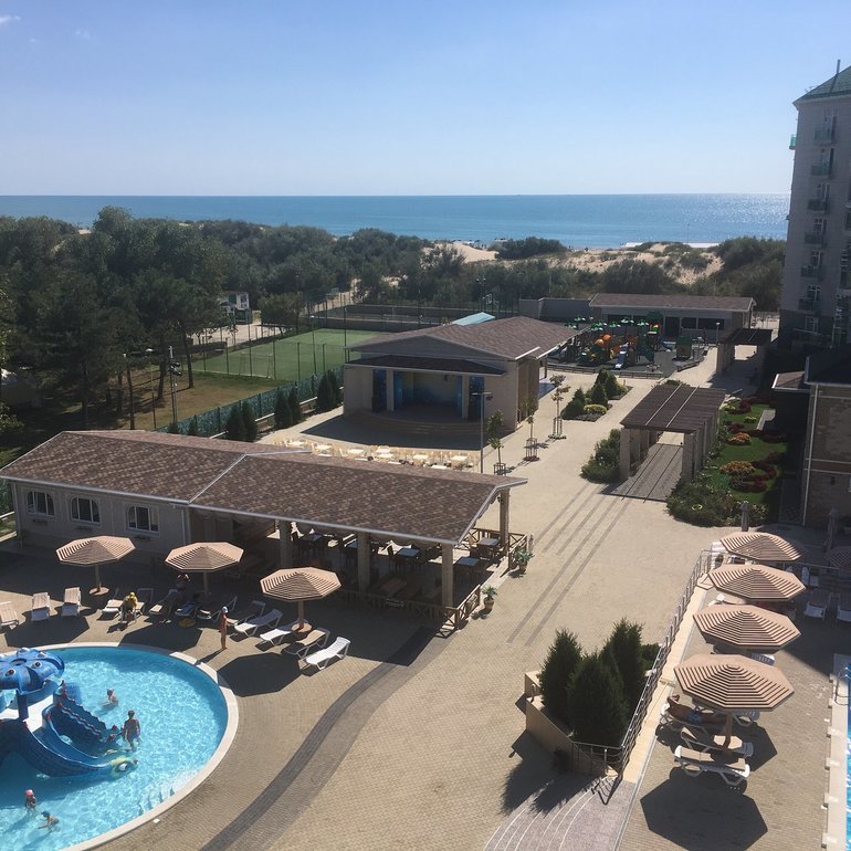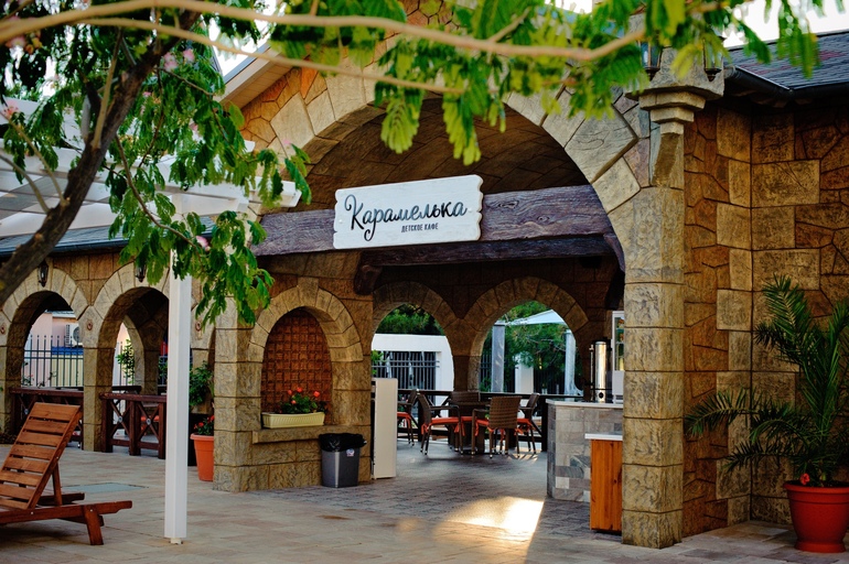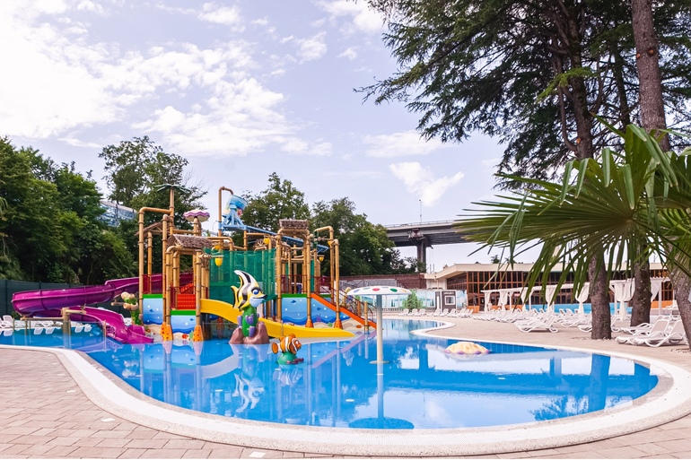 Обширная территория предлагает возможности как для активного отдыха: спортплощадки для игры в футбол, волейбол, баскетбол, прокат велосипедов, так и для спокойного времяпрепровождения в тени парковой зоны и беседках. На территории отеля расположено несколько детских игровых площадок, детский лабиринт, игровая комната с приставками и детская комната с воспитателями.