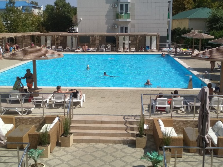 - открытый бассейн с зоной отдыха (шезлонги, зонтики, душ, туалет), детское отделение в бассейне для взрослых