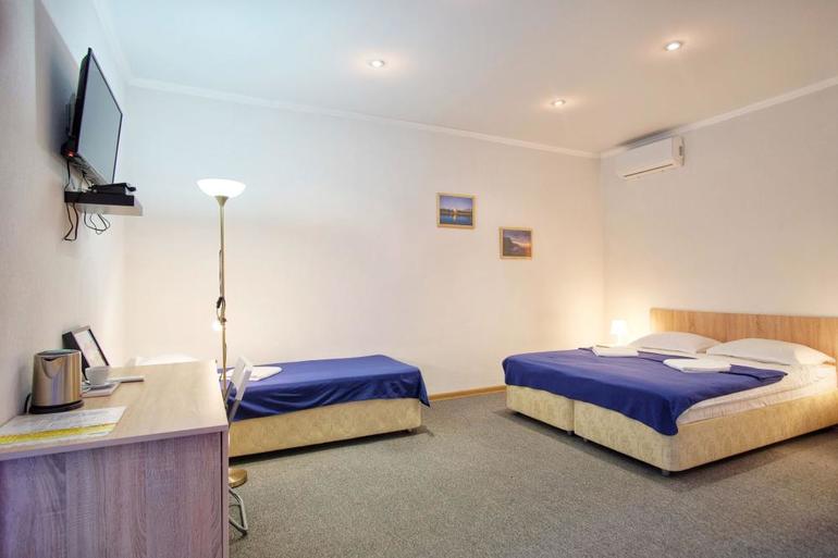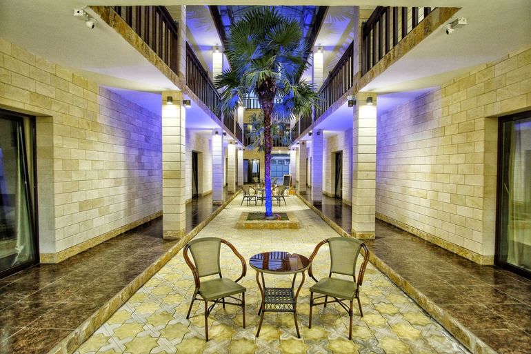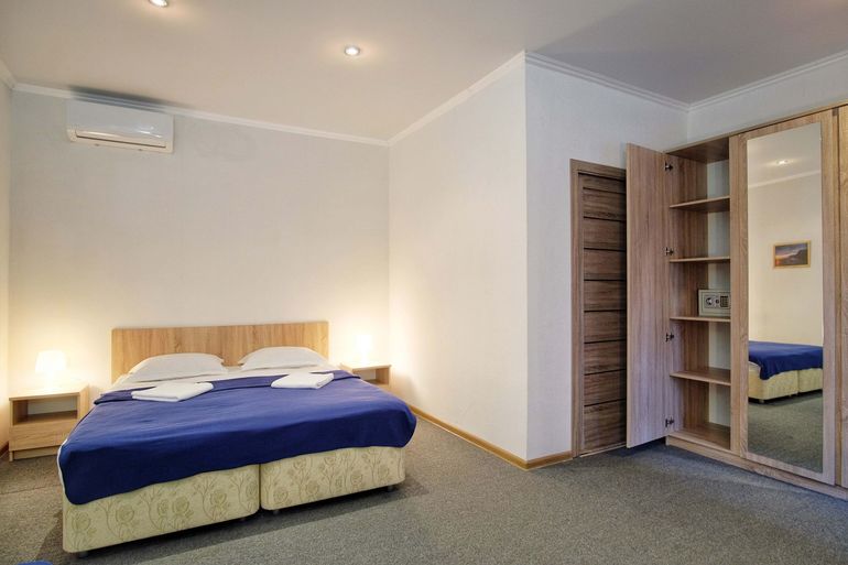 На территории отеля, огороженной и охраняемой, расположены четыре двухэтажных здания в классическом стиле. Жилой фонд составляют 35 номеров категорий «стандарт». В каждом из них есть санузел с душем и феном. Все номера оборудованы необходимой бытовой техникой: кондиционером, сейфом и телевизором, другими удобствами. Wi-Fi доступен на территории.