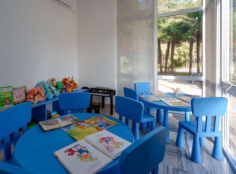 Для малышей оборудована детская площадка, а ребята постарше могут заняться творчеством и играми в детском уголке.