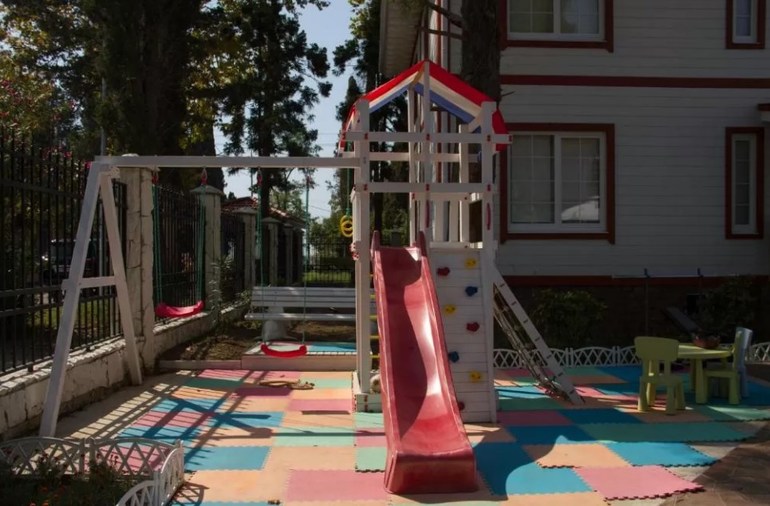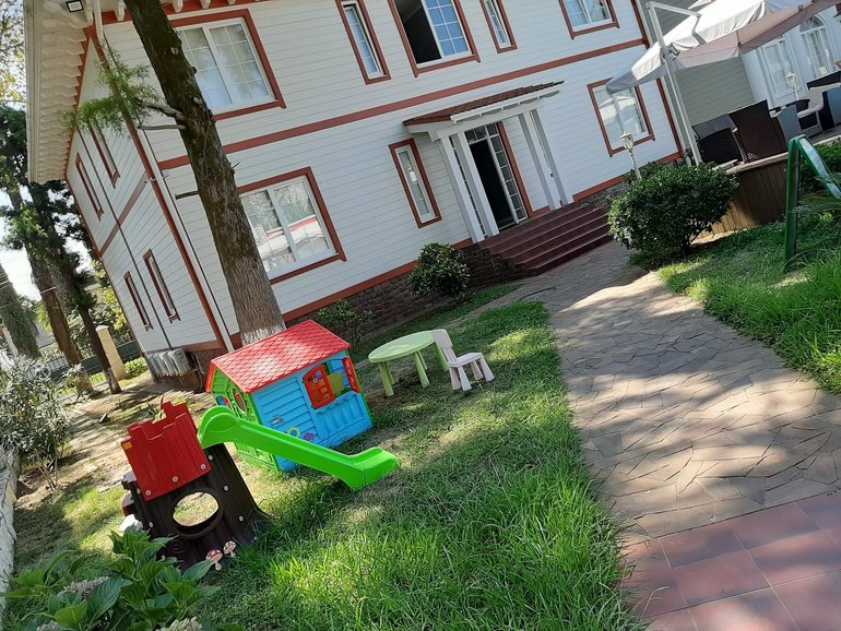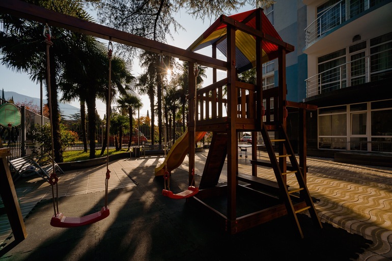Для детей есть игровая площадка на свежем воздухе.