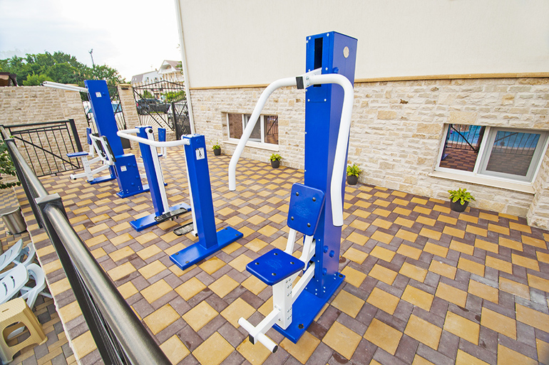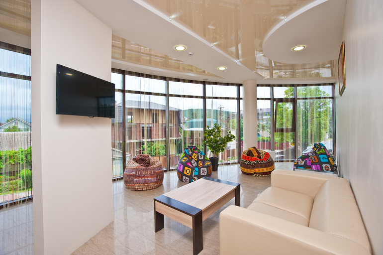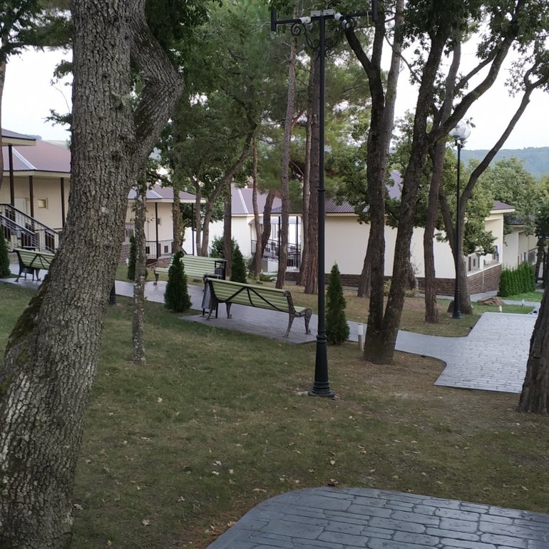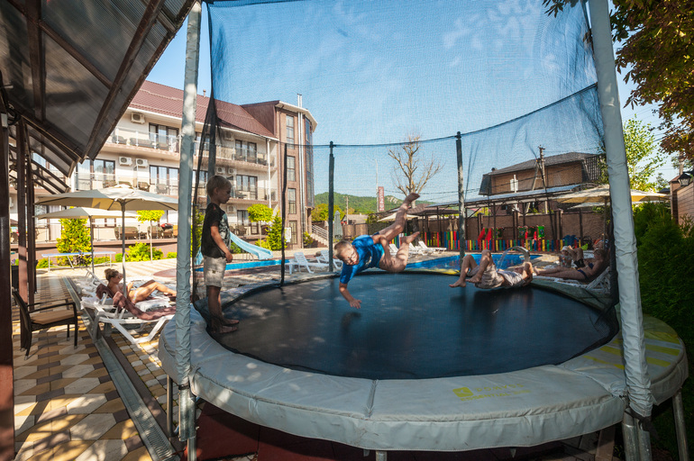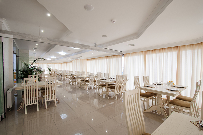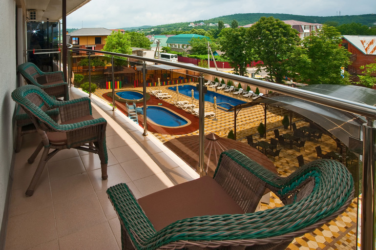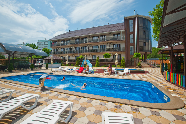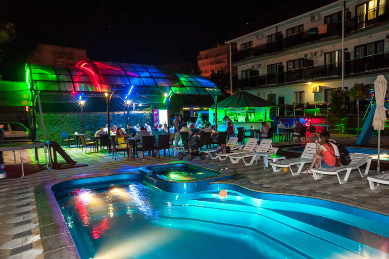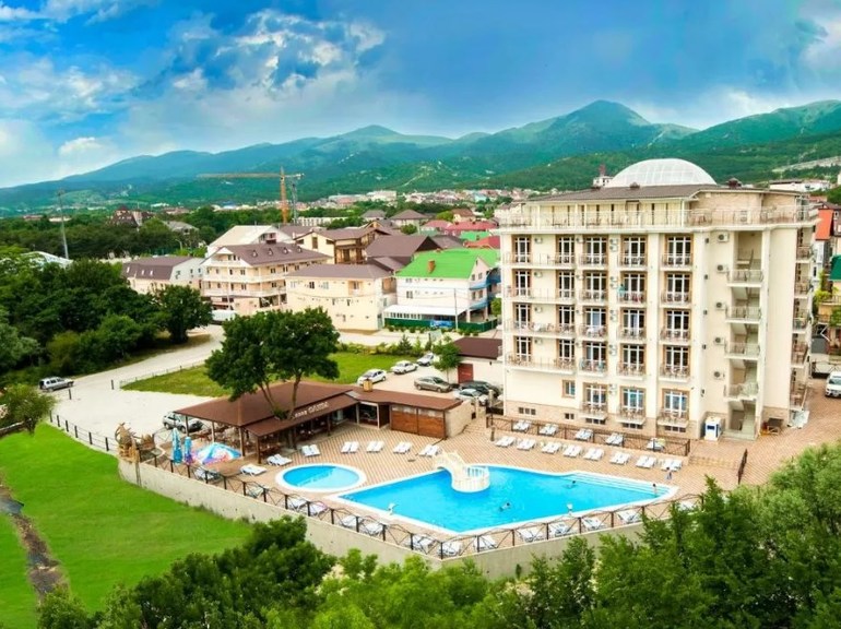 Пятиэтажный корпус отеля с лифтом, возвышающийся на охраняемой закрытой территории, вмещает до 175 отдыхающих.