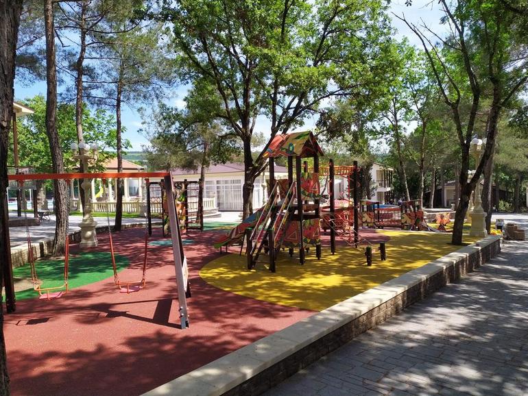 В пяти минутах ходьбы от отеля разместился поселковый мелкогалечный пляж с большим количеством кафе и баров. На пляже для отдыхающих предусмотрены лежаки, навесы, душевые и водные развлечения на любой вкус.