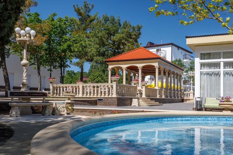 Четырехзвездочный отель «Ахиллеон Парк» расположился в центре Кабардинки - одного из самых популярных курортных поселков Краснодарского края. От морского побережья гостиницу отделяют всего 600 метров, в шаговой доступности - основная инфраструктура курорта - лунапарк, динопарк, центральная набережная с кафе, ресторанами, ночными клубами.