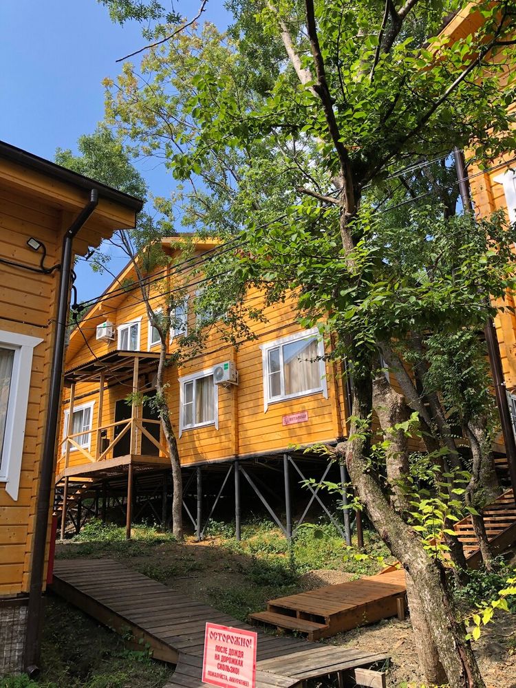 На благоустроенной территории площадью 8 гектаров разместилось несколько двухэтажных корпусов. Гости могут выбрать размещение в номерах категории Студио, Стандарт или заселиться в просторные Апартаменты.