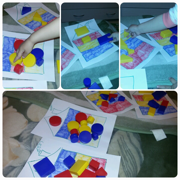 С фигурами мы знакомы, знаем круг, овал, квадрат, треугольник, прямоугольник, трапецию. Основные цвета тоже знаем. Играли с удовольствием, но получилось в 2 этапа за один день, утром и после дневного сна.