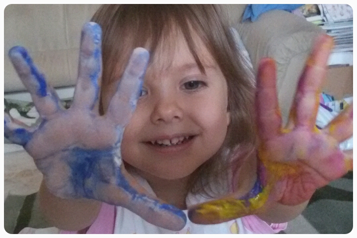 Привет всем! Америку не открою про рисование ладошками, но Сашулю очень заинтересовало такое творчество. Раньше предлагала, но ей не нравилось марать руки, теперь все изменилось!))) Саше 2,2 года.