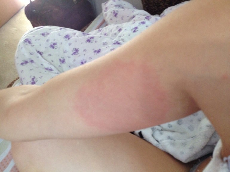 На работе съела сырок глазированный, высыпало шею. Домой пришла , съела сгущенки и покрылось все тело. На фото только пару частей тела, которые покрылись пятнами.