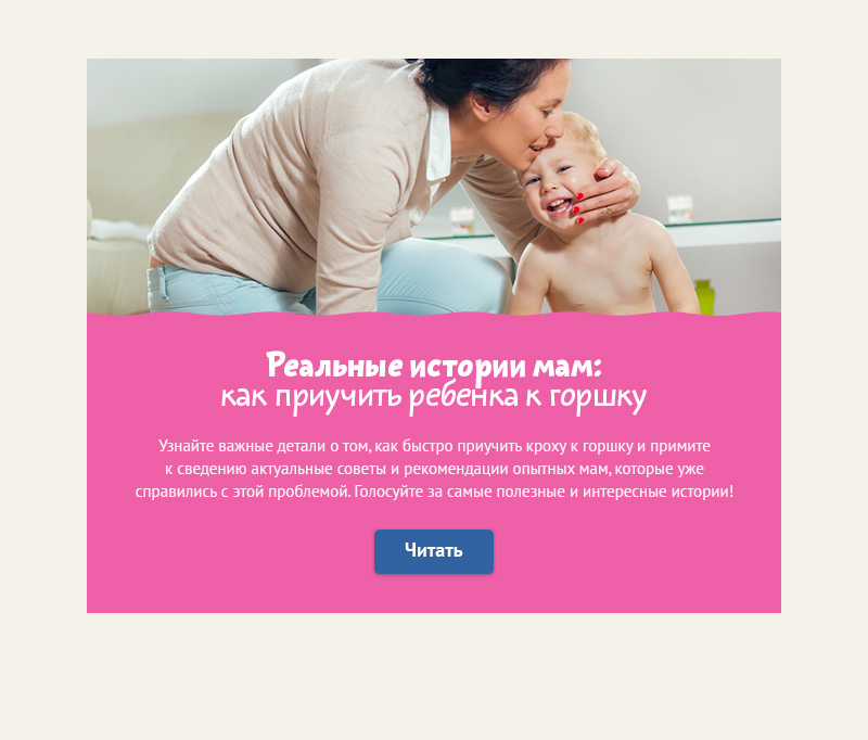 Юии → Новенькая Спам Мама двоих (13 лет, 21 год), планирую беременность Краснодар Полезные советы для мам: как приучить ребенка к горшку Усаживая ребенка на горшок, ласково повторяйте одни и те же словаяНа втором году жизни нервная система ребенка развита достаточно для того, чтобы выстроить логическую связь между вербальными сигналами и физиологическими реакциями. Если при каждом высаживании на горшок мама ласково и убедительно повторяет одни и те же слова.