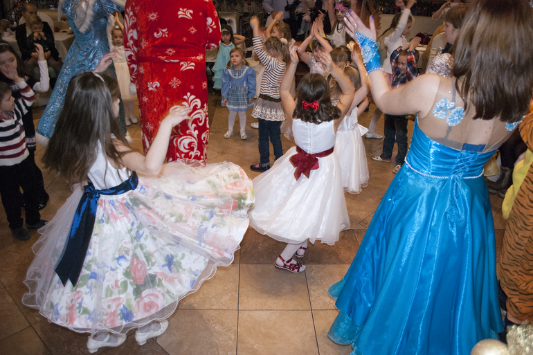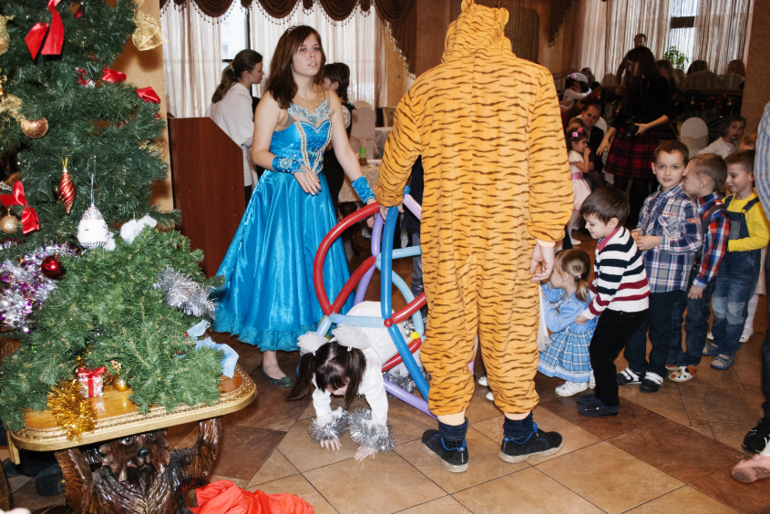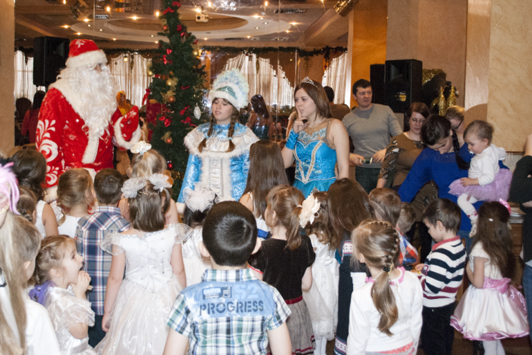 А вчера мы ходили на бесплатную елку в ресторан "Бульвар" на ул. Мичурина. Программа была достаточно динамичная, но мы еще не принимали активное участие, только крутились рядом и танцевали) Когда появился Дед Мороз, я спряталась за столб и наблюдала за реакцией Сластены. Она стояла в самых последних рядах и так забавно выглядывала и с интересом наблюдала за ним. Выглянет и обратно спрячется. Потом с другой стороны высунет головку. Смешная))) Самое активное участие мы приняли, когда получали новогодний подарок - нужно было постоять в очереди и отдать Деду Морозу билетик, чтобы получить сладкую коробочку в виде сказочного домика. Подарки раздавал сам Мороз, что не может не радовать!) Вообще интересный формат елки: детей развлекают аниматоры, а для родителей работает ресторан, где они во время представления могут не просто стоять и ждать, а перекусить или даже тоже отпраздновать елку))) И все это в одном зале. Цены в ресторане, кстати, достаточно приемлемые. На елку можно было прийти бесплатно, а для желающих получить подарок нужно было оплатить этот самый подарок заранее и получить билет. Отличная возможность, я считаю, для тех, кто не может себе позволить лишние траты, но желает подарить деткам сказку. Кстати, каждое воскресенье там проводятся бесплатные детские праздники с мастер-классами. Повторюсь, находятся они на ул. Мичурина. Мне понравились ребята-ведущие, и насколько я могла видеть, деткам было весело. Не уверена, есть ли сайт у этого ресторана, а детские анонсы бывают здесь.