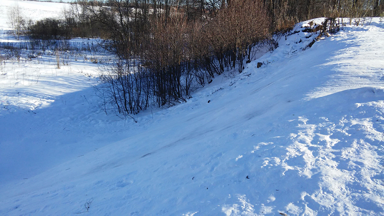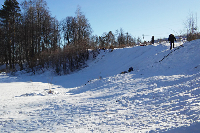 наш TimeOutЕсли свернуть с Красноармейского шоссе под указатель "Оздоровительный комплекс Левково", то с левой стороны дороги будет протекать небольшая по ширине речка Скалба. В противовес ее скромной ширине, спуск к реке очень продолжительный и высокий. Поэтому зимой там настоящий рай для диких покатушек на тюбингах, ледянках и прочих приспособлениях.