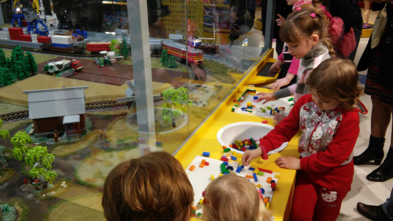 По пути встретили площадку, где можно помастерить из кинетического песка, этаж Лего с самыми разнообразными фигурками из этого конструктора и столиками для творчества для всех желающих. Целый город профессий для детей Кидбург, когда-нибудь и нам это будет интересно, а пока мы прошли мимо, но отметили, что интересом он очень даже пользуется. Я про него читала, проект вообще интересный, конечно.