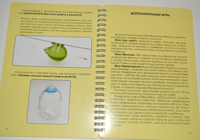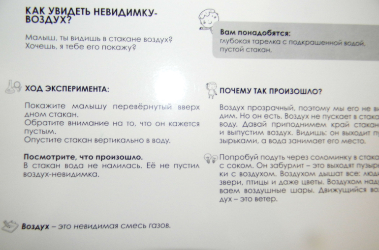Из минусов- отмечу что некоторые эксперименты описанные в карточках у нас не очень удались, но это может быть и моя ошибка. Ну и было бы здорово ход каждого эксперимента нарисовать а не просто описание дать, но это уже мои заморочки, мне просто быстрее понять если нарисовано)))