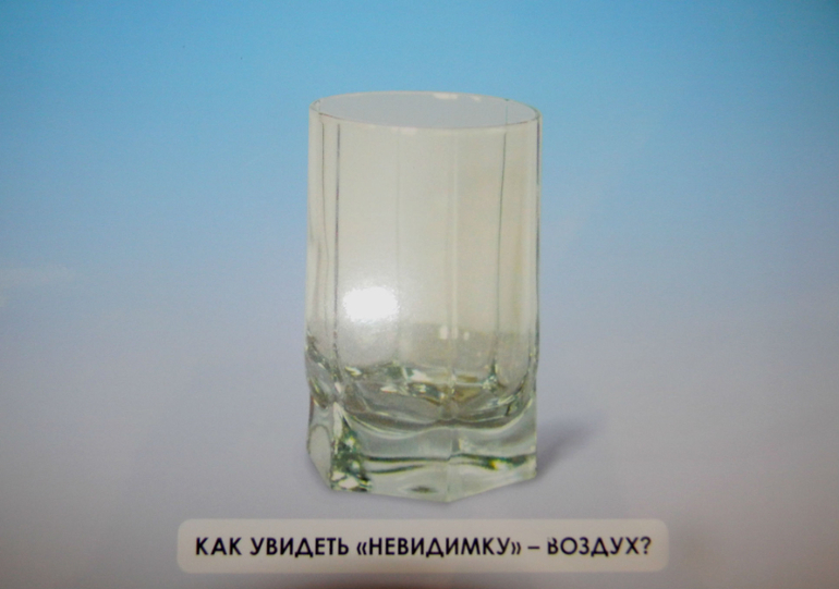 Приподнимаем стакан и видим как воздух выходит пузырьками и вода уже попадает внутрь