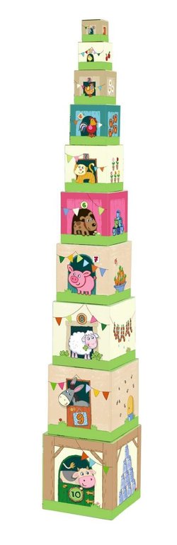Замечательные кубики-вкладыши из плотного картона, прочные. яркие. слюни выдерживают. Малыши после 7-8 месяцев учатся вкладывать один предмет в другой. После полутора лет начинают строить башенки и "поезд", после двух складывать кубики боком,так, что бы получались окошки-домики где можно "селить" фигурки животных или кукол.