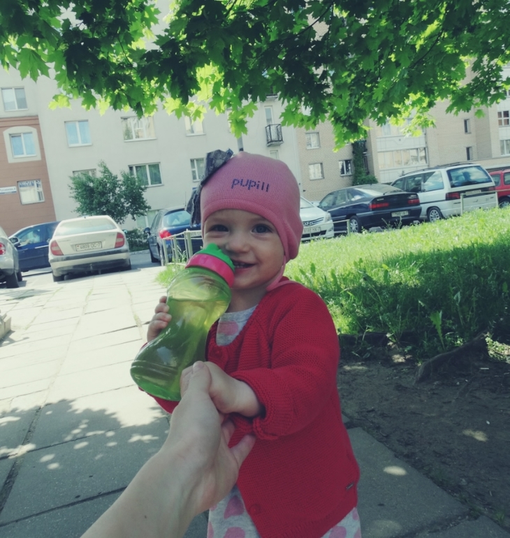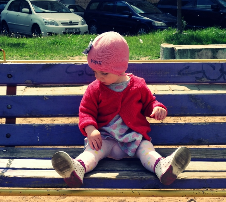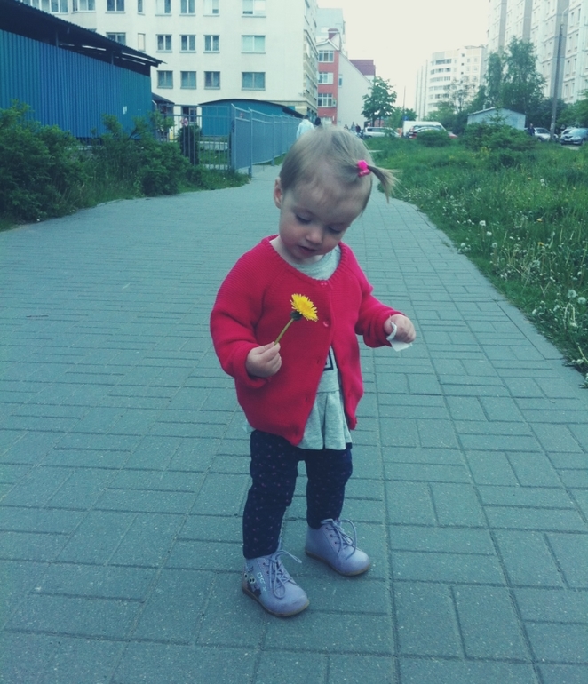 Торговые центы торговыми,но прогулки на улице никто не отменял!Чаще всего мы гуляем возле дома,т.к делаем это без коляски!Сидеть в ней Соня отказывается наотрез...на улице нам не нужны игрушки,лопатки,формочки!Ей вполне хватает травы,песка,камней и конечно одуванчиков!Не скажу,что она бросается рвать все,что в поле зрения!я аккуратно срывает один или два одувана,даю ей...и держа их в руках(мёртвой хваткой)она гуляет с ними!Любит камни,хоть раз да лизнёт,пока я отвернусь!Ни одна прогулка не обошлась без вмешательства прохожих!!Самый задаваемый вопрос сколько Соне лет?В ответ моя девочка одаривает всех прохожих улыбкой))Я выполняю функцию помощника,когда она не может переступить бордюр или другое препятствие...больше я ей не нужна!Она сама и только сама!