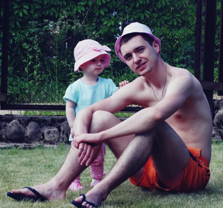 с крёстным и двоюродной сестрёнкой)