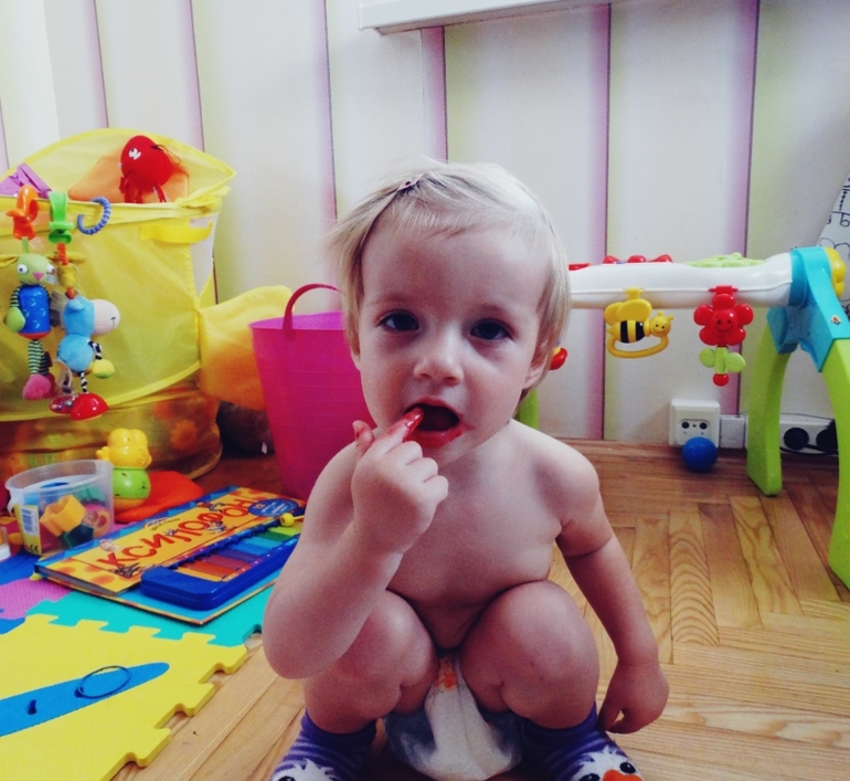 Начну с первого пункта!Да да да,в начале августа моё терпение не выдержало и за один вечер случился наш переезд!Я планировала его сразу после отдыха,но мы поехали на дачу и как-то не было времени!Но в один прекрасный день Соня меня просто добила своими акробатическими этюдами,забираясь на тахту,с тахты на стол,а со стола на подоконник,что за пол часика муж перетянул тахту в спальню,а кроватку в детскую!Софа была совсем не против,просыпалась ночью так же,как и в спальне!Никаких истерик,капризов или плохого поведения в связи с переездом у нас не было)Такое ощущение,что ничего и не произошло!Я безумно рада,что изменения пошли всем нам на пользу и прошли бесследно)Девочки,какой это кайф,когда можешь спокойно зайти в спальню,развалиться на кровати,почитать журнал и посидеть спокойно в интернете,а не на цыпочках приходить,бесшумно укладываться и засыпать!Да и Софа спит спокойно,не отвлекаясь на шорох(я очень сильно и часто ворочаюсь во сне)!Не успела я порадоваться,как моя кроха приготовила второй сюрприз!Просто взяла и перестала просыпаться ночью,хотя делала это стабильно раз или даже два за ночь!А через день\два отказалась есть смесь и на ночь!так что сон в своей комнате,да ещё и без смеси довел меня до восторга))не думала я,что все так быстро и так сразу произойдёт!НО не тут-то было!Мой ребёнок,который с рождения ни единого раза не уснул без укачивания начал вырываться и ни в какую не хотел укачиваться!Начала показывать на кроватку,мол положи,а дальше я сама все сделаю!Шилопопства нам не занимать,поэтому мы по сто раз вскакиваем,выбрасываем соску и стоим ноем!НО:на раз 5-10 засыпает сама или же я глажу ей волосики и она засыпает!Над самостоятельным засыпанием мы ещё работаем!Вот такая цепочка нововведений у нас произошла.Совсем мы взрослые и самостоятельные стали!