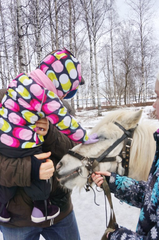 Лошади и пони находятся в открытом вольере, их можно разглядывать абсолютно бесплатно. К уходу за животными привлекаются и подростки, что тоже не может не радовать. За небольшую плату можно прокатиться на лошадке с ребенком. Маша пришла в восторг. Она никогда не видела так близко лошадей, а они большие, красивые, с огромными сильными копытами, с глубочайшими карими глазами и огромными ноздрями, в которые, если бы ребенок был доктором, можно капать гигантские капельки. Все это не может не удивлять городского ребенка, живущего далеко от дикой природы. Дочь с удовольствием попросила прокатиться на пони, которого звали Диор, и было ему 17 лет! Потом она погладила его по головке, и мы пошли домой в полные впечатлений! Летом там наверное особенно приятно, можно совмещать прогулку у озера и любование лошадьми!