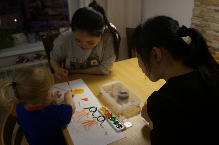 Заразили своей идеей еще одного жителя нашего города, теперь у девочек два ученика! Мальчик делает большие успехи, потому что постарше и способен тут же повторять, Маша пока только впитывает, но я рада, что начали мы рано, у нас долгий путь впереди и столько всего интересного!