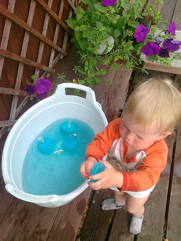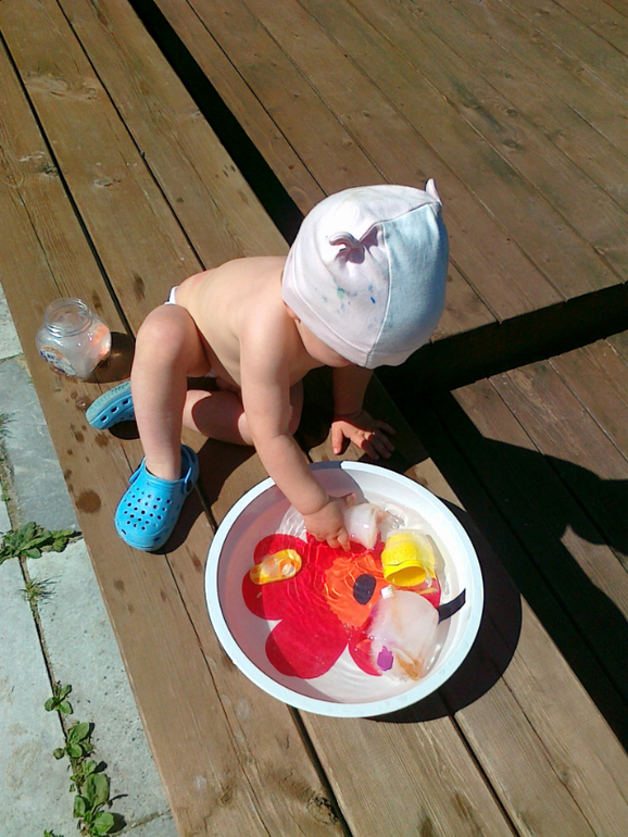 Иногда, во время принятия вечерней ванны, я даю Маше лед с сюрпризиком - изюмом, виноградом или долькой лимона. Им можно не только играть, но и скушать.