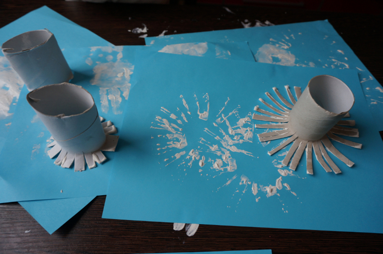 Зимняя тематика в нашем творчестве в полном разгаре. Снежинки пробуем рисовать в разных вариациях. Этот способ один из самых простых, но результат получается красивым! Мы с Машей взяли коктейльные трубочки, кончики разрезали ножницами, распушили и стали обмакивать в бело-синюю краску - появились милые снежинки! А потом и целый снегопад! Если краски взять яркие, то будет цветочная поляна!