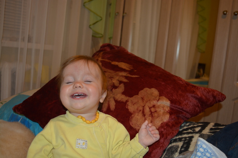 Спросили, сколько говорит слов О_О. Я аж обалдела "Ну как слов.. ну вряд ли это осознанные слова у нее." Врач: "Ну слогами сколько? ну 6 будет?" Фух! Сказала, что наберется. А так говорит, как и раньше ма-ма, ба-ба, па-па, дя-дя, на-на, тя-тя или ти-тя (кыця). Но ночью один раз во сне заплакала и позвала меня, прям так четко МА-МА. Значит, уже осознано называет.