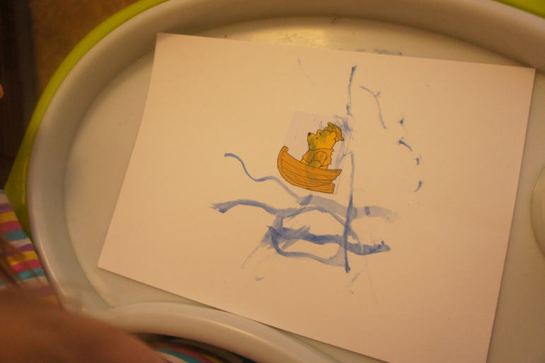 Ну а потом настал черед рисования. Сначала рисовали красками речку, по которой плывет Винни-Пух.