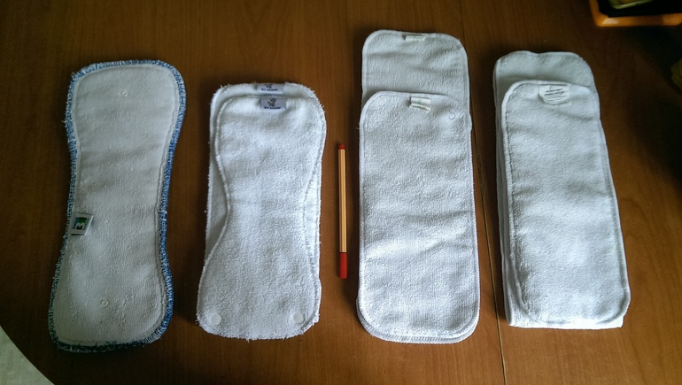 К сожалению в опыт не попали сразу махровая пеленочка мокоша, макси-микс от Mamalino и конопляные вкладыши от babyidea(которые находились все в стирке) а так же большие вкладыши от wisemam(о которых я позабыла в связи с редким использованием. Поэтому добавила их позже: