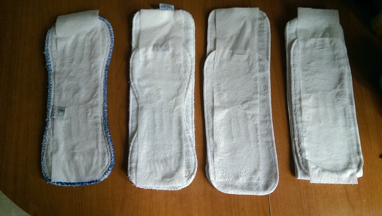 слева направо:большой вкладыш в обложку от wisemam, best bottom L вкладыш из конопли+органический хлопок, махровая пеленочка мокоша, конопляный вкладыш Babyidea, вкладыш в тренировачные трусики best bottom(микрофибра+хлопок). их результаты добавила в соответствующие группы