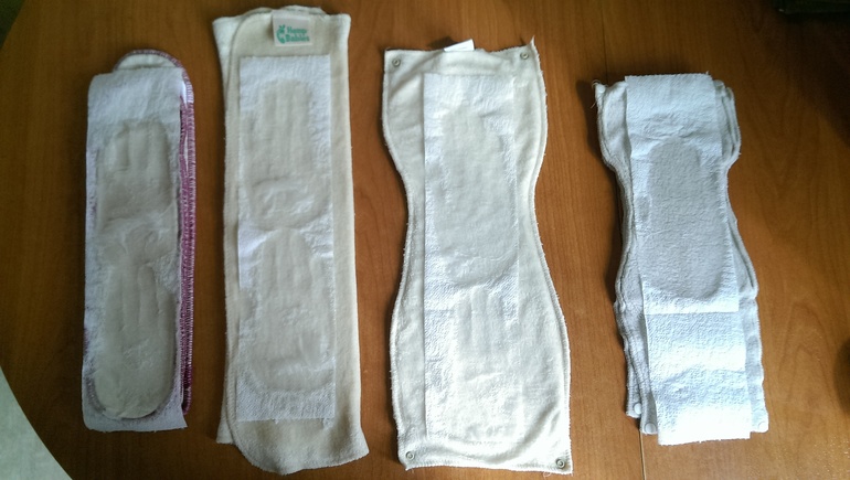 мои многоразовые поднузникиИзначально я хотела сравнить впитывающие способности натуральных и синтетических волокон. Взяв микрофибру, коноплю, хлопок. Однако, мои «исследования» расширили свой перечень. В результате у меня появилось три подгруппы: чисто микрофибра, большие вкладыши из натуральных и "околонатуральных" тканей, простые тонкие вкладыши.