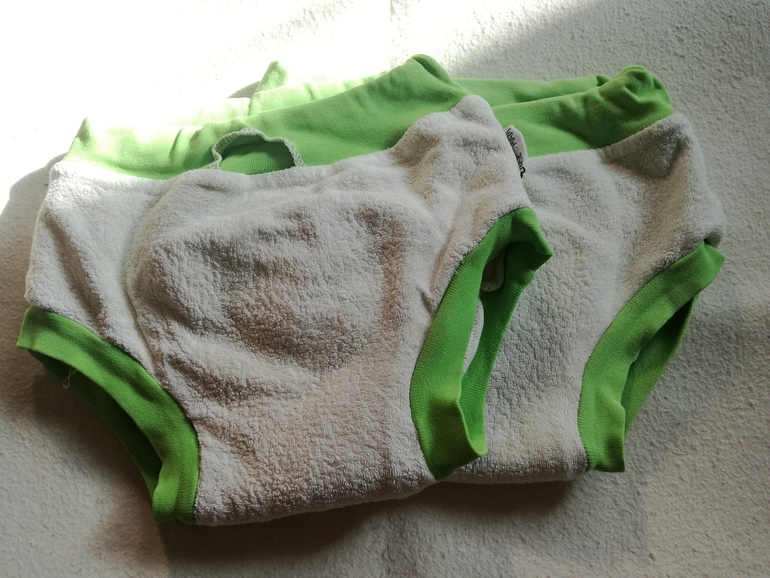 В ходу уже год. Махра хорошо держит, много впитывает. Сохнут, правда долго. Сейчас, когда сыну 2,2 после сна я их не решаюсь одевать, т.к. все равно протекут и будет лужа(шерсть я на трусы чаще всего не одеваю, а Марк не всегда согласен присесть на горшок после почевания).