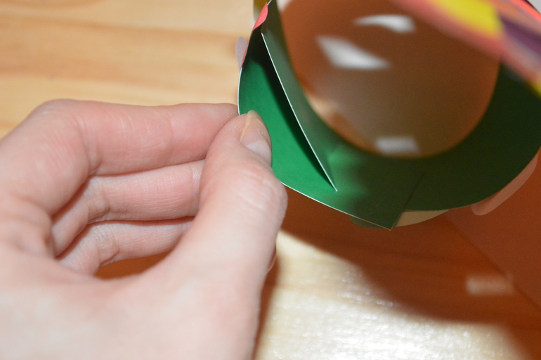 Отступив по 2-3 сантиметра от края полосы-подставки делаем прорези - с одной стороны сверху, а с другой снизу.