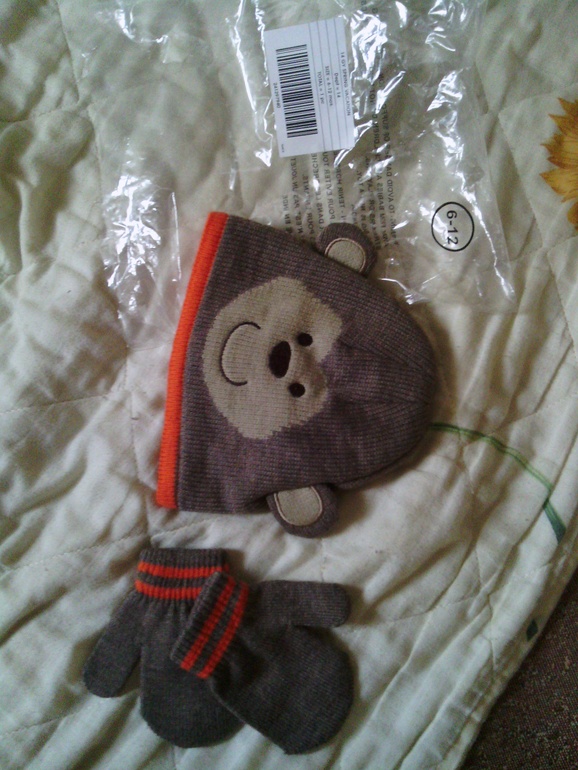 Шапочка обезьянка и варежки, подкладка флис. На 6-12 месяцев.новые. Цена 800 р.