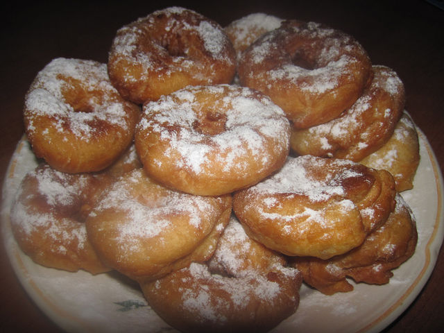 Люблю я готовить эти пончики. Готовить легко, а в итоге целая тарелка вкуснючих пончиков.